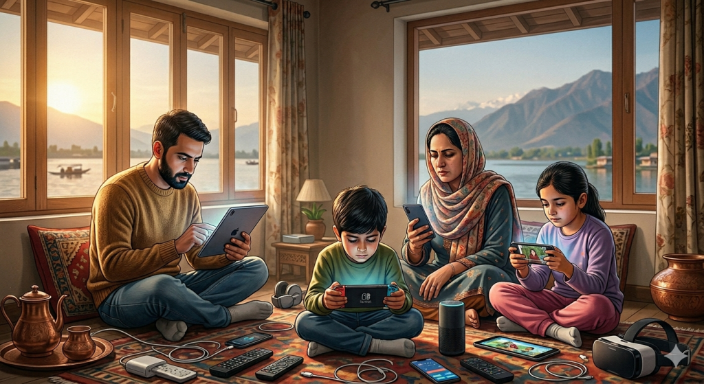 Instead of playing outside and getting social, children Big alienated from the society. This prevents them from forming normal social relationships and having activities with their friends. Sociologist Farah Qayoom, who teacher at the University of Kashmir says, gadgets are impacting the social and family bonds. The well-knit structure of family which was reinforced by interactions between family members has been affected as gadgets have come in between. “There used to be strong bond between family members as there was face to face interaction. But now the familial bond has been affected, children don’t spent too much time with their family because they are too busy with the gadgets,” Qayoom said. She adds that playing outside was very important for the development of children, which was also encroached upon by gadgets. “Children are making gadgets their virtual friends and the peer group interactions are gradually coming to an end,” she said. This, she says, has a bearing on the social skills that children acquire while playing with other kids. Dr Mohammad Muzaffar Khan, Consultant Clinical Psychologist says the decreased socialization affects the inter-personal problem solving capacity of children. “A child knows how to resolve inter-personal issues when he/she plays outside with other children, but when a child sticks to the gadgets, he/she stays unaware of such things and faces many problems while communicating or socializing,” said Dr Khan. Excessive use of gadgets have other health risks such as poor sitting postures and eye strain. There are also social and emotional risks like gaming addiction and cyber-bullying. Lack of physical activity indirectly leads to childhood obesity. Children today prefer spending hours playing with their tablet or cell phone instead of heading outdoors to a park or getting active with friends. Just imagine a kid siting with a tablet in hand and playing a game. What physical exercise is done here? Hardly any! Psychiatrist, Dr Arshad Hussain says, “Increased use of gadgets effects the development of kids adversely. It decreases physical abilities, social intelligence and ability to socialize in real life scenarios.” Moreover while taking a tablet or smart phone to the dinner table, experts say, a child can not control the normal food intake. Either they eat too quickly or too much as they are focused on the screen, not on the meal. Dr Khan, says that that excessive gadget use also affects the self-confidence and self-esteem of a child. “Kids are so engaged with these gadgets that their co-curricular/extra-curricular activities are affected, socialization and inter personal interactions have decreased, which leads to long term deficiency in inter-personal skills,” says Dr Khan. He adds that it also leads to lack of assertiveness and the effects stay with the child as they reach adulthood. Despite what the experts say, many parents feel proud to have their children handle gadgets at an early age. Some believe that it is important for education these days. So they encourage their children to watch TV, use mobile phones, laptops and other gadgets.